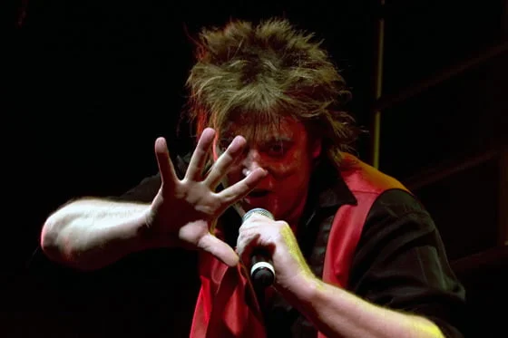 Doc Neeson was known for his dynamic stage presence, powerful voice, and unique vocal style.